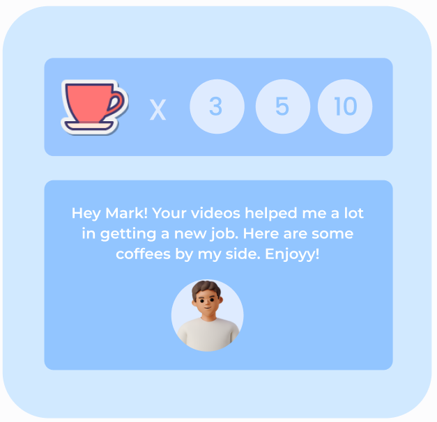 Let your followers show appreciation for your content and services by sending you coffees as tips